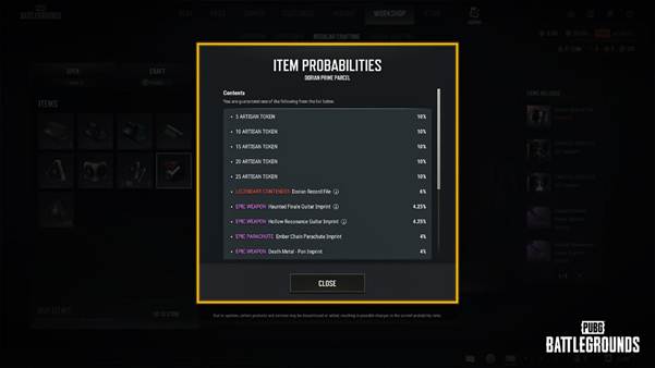 - 道具概率弹窗中将显示道具的稀有度和类别。