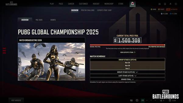 - 您可以在概要页面查看 PGC 2025 赛程与奖金信息。